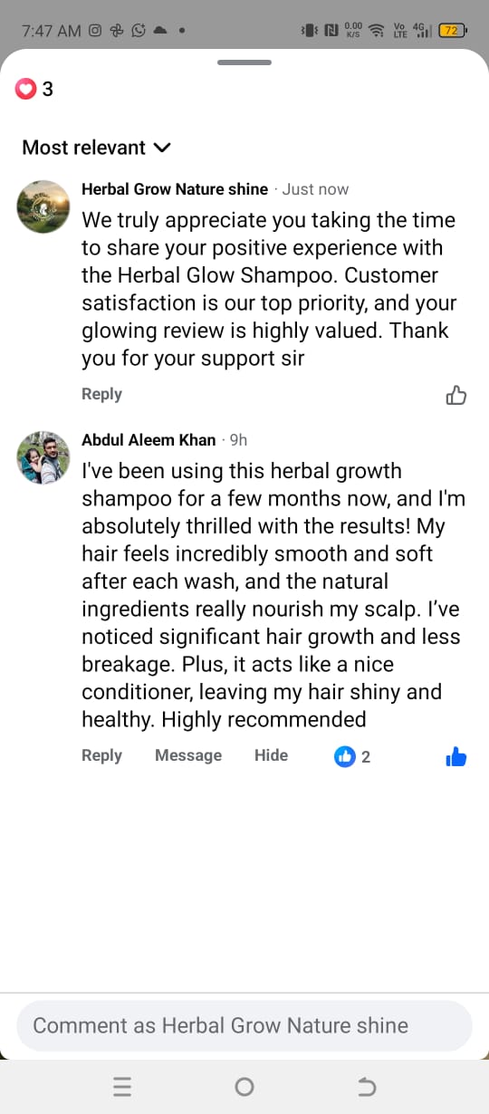 Herbal Glow Hair Oil combines time-tested herbal ingredients with nutrient-rich carrier oils to provide complete scalp and hair care. Its rich formula helps control excessive hair fall, dryness, dandruff, and weak roots while promoting thicker, longer, and healthier hair.